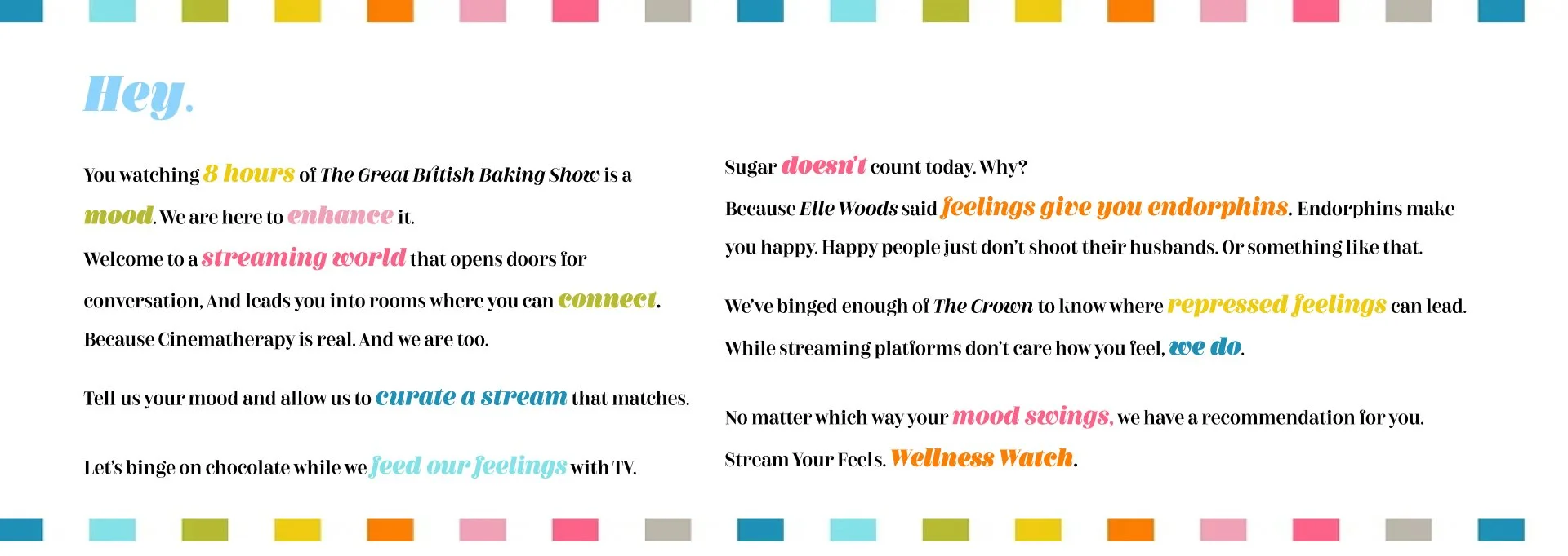 Vanity Fair curates a streaming platform allowing users to binge content based on their mood.